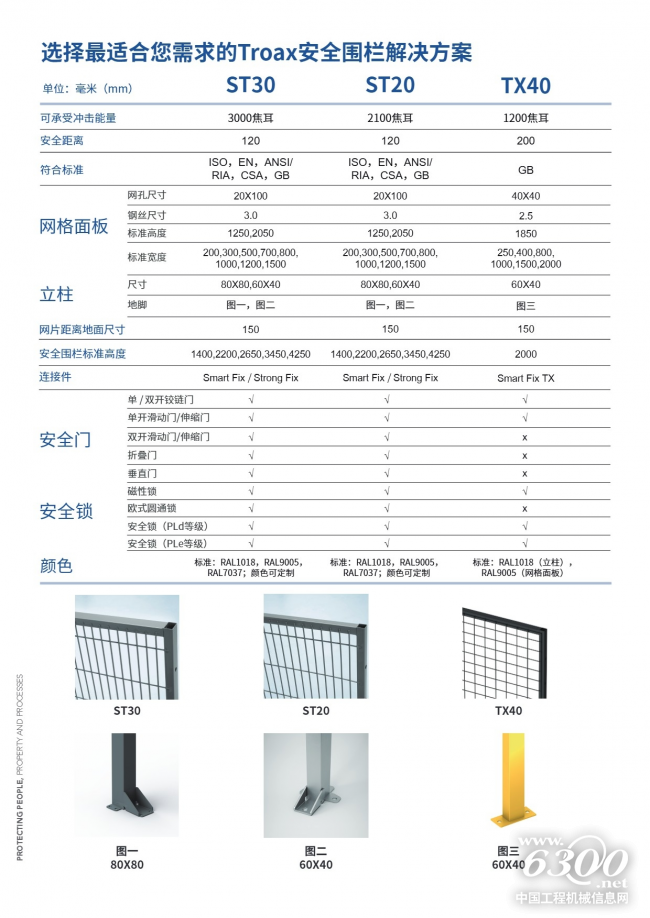 TX40钢制安全围栏系统是一款专门为满足中国客户的需求和使用习惯而开发的围栏系统。它是一款经济型安全围栏解决方案,符合中国的机械安全标准和法规,各种部件如网片、立柱、附件等都在国内开发和生产,可以和TROAX(图瓦斯)产品ST30、ST20共用大部分安装附件,为客户提供更加丰富的安全围栏解决方案。
