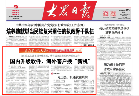 8月12日,《大众日报》头版刊登了关于山东临工《国内升级软件,海外客户换“新机”》的报道。公司自主研发的全电控挖掘机通过OTA远程升级,“分钟级”实现功能重塑与性能优化,不仅彰显了技术硬实力,更折射出作为山东工程机械“链主”企业,深耕海外市场,在响应 “走在前、挑大梁” 重大使命中,以 “龙头” 带 “链条”、携产业链共同出海的责任与担当。