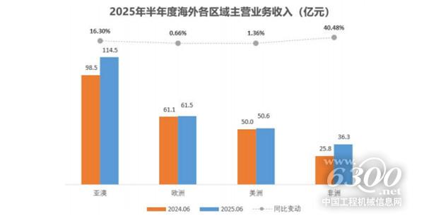 三一重工2025年上半年营收445.34亿元,同比上升14.96%,海外营收占比超60%!
