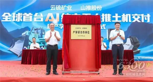 仪式上,云硫矿业与山推完成“金钥匙”交付,标志着全球首台AI纯电无人推土机正式投入使用;双方签署战略合作协议;共同为“云硫—山推产学研合作基地”揭牌。一系列仪式庄重而高效,展现出双方合作层次的不断深化。