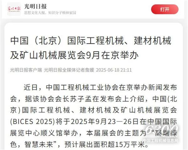 相信在9月23—26日,金秋的北京,在主流媒体的见证与传播下,BICES 2025必将以更加开放、自信的姿态,向国内外展示出工程机械行业的最新发展情况和发展趋势。