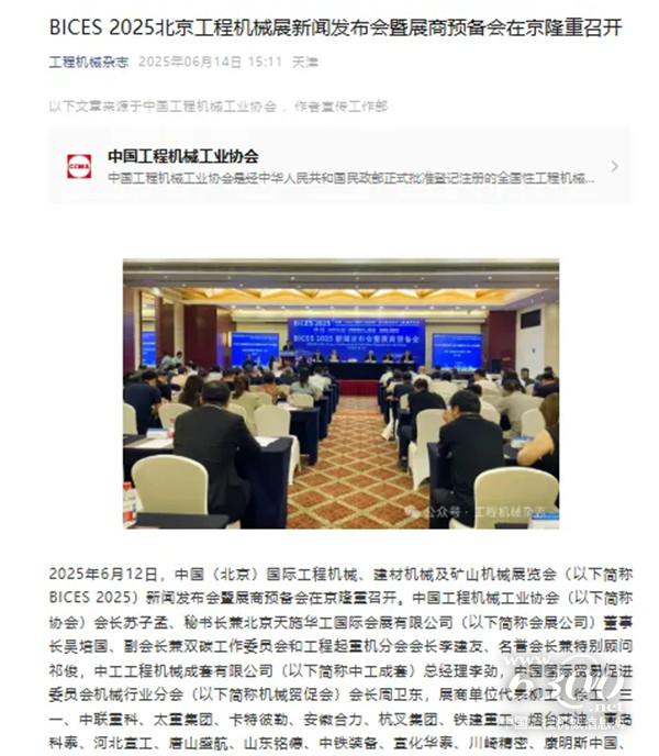 可以预见,在未来16天里,BICES 2025相关新闻将持续升温,从展前预热到现场展出,从深度报道到数据解读,一场行业盛会的传播热潮正在形成。这不仅是对展会本身参与各方的有力支持,更是对工程机械迈向智能化、绿色化、高端化的有力推动。