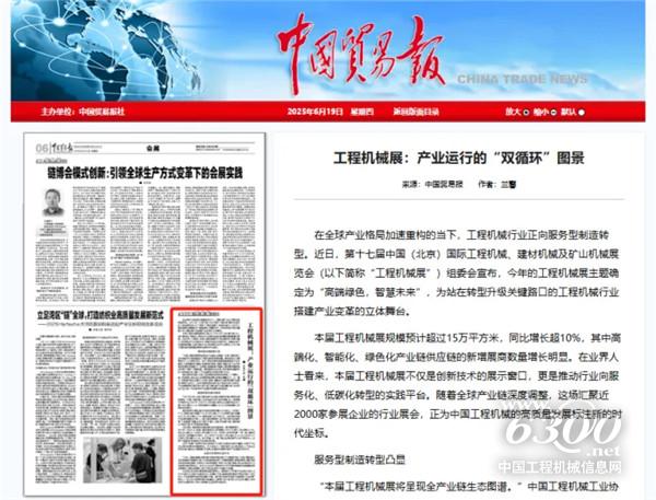 国内行业相关主流媒体包括中国工业报、中国矿业报、中国水利报、中华建筑报、《中国机械》杂志、《工程机械》杂志、《工程机械文摘》杂志、《工程机械与维修》杂志、《今日工程机械》杂志、《建筑机械》杂志、《建筑机械化》杂志、《建设机械技术与管理》杂志、机工工程机械、《液压气动与密封》杂志、《中国机电工业》杂志、《混凝土》杂志、《商品混凝土》杂志、《中国工程机械工业年鉴》书刊、《发现资源·工程机械》杂志、《叉车》杂志、商用汽车新闻网、《商用汽车》杂志、《物流技术与应用》杂志,以及面向用户领域的《交通世界》杂志、《交通建设与管理》杂志、《铁道建筑》杂志、《矿业装备》杂志、《矿山机械》杂志、《有色金属(矿山部分)》杂志、《水利发展》杂志、《市政技术》杂志、《施工技术》杂志等,还有众多行业网络媒体如路面机械网、慧聪工程机械网、工程机械商贸网、铁甲网、第一工程机械网、匠客工程机械、工程机械品牌网、工程机械信息网、挖掘机械网、机械情报站、属具营地、见道网、中叉网、QC检测仪器网等等在内的众多行业主流媒体等。目前有的蓄势待发,有的计划前往展会现场采访报道,有的提前设立专题持续追踪展会进展动态、参展企业动态和展出交流成果等。