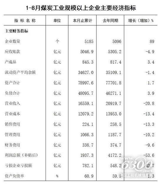 2025年1-8月煤炭工业规模以上企业主要经济指标
