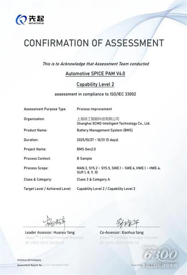 全“满分”认证!徐工国内行业首家通过ASPICE 4.0 CL2评估!
