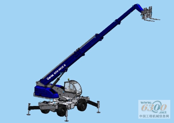 The new rotating GTH™-6025R is the fourteenth model in the Genie telehandler range. With a maximum lifting height of 24.8 m and a maximum forward reach of 20.85 m, the new Genie GTH™-6025R is able to lift up to 6,000 kg. With four independent stabilisers that are hydraulically actuated and a ground clearance of 54 cm, the GTH™-6025R is ideal for working in rough sites.