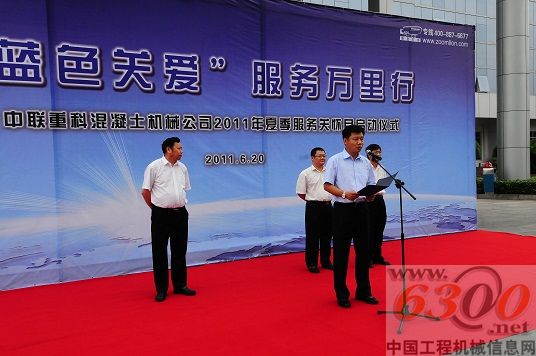 2011年6月20日上午11点,绵绵细雨为火热的长沙带来了丝丝凉意,在中联重科麓谷工业园前坪,来自营销、技术、品质、市场各个部门的员工们精神饱满,热情高涨,一字排开的售后服务车整装待发。中联重科混凝土机械公司主题为“蓝色关爱”的服务万里行活动启动仪式在这里隆重举行,这次服务活动将于6月20日至8月20日在全国30个省份集中开展,为期60天。中联重科高级总裁、混凝土机械公司总经理张建国,副总经理李青林、曾刚,总工程师吴斌兴等领导参加了此次启动仪式。近500名员工集体欢送了服务分队队员。