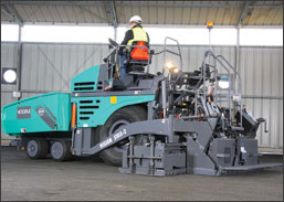 德国Vogele推出的新型铺路机5100-2和503-2没有上下料装置,而是装配有独立的传送带,可以进行自动或者手动调节,以保持物料的平稳输送。Vogele提供可选液压防护挡板,该装置可以防止前部溢料。料斗关闭时,前部挡板就会升起。通过控制区网络(CAN)进行控制,简化了线路,大多使用单线回路。Vogele的Niveltronic Plus自动爬坡和倾斜控制系统集成在牵引机和熨平板部分。5100-2和503-2型铺路机使用170马力的康明斯QSB 6.7柴油机。 |