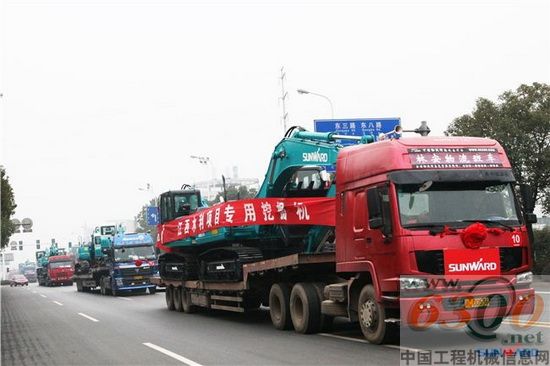 列队行驶的挖机车队