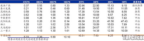 在不考虑资产重组的前提下,我们预计股份公司08、09、10年EPS分别为0.34、0.48、0.60元/股,复合增长率46%,同时还考虑到公司未来资产注入的可能性,给予推荐评级。