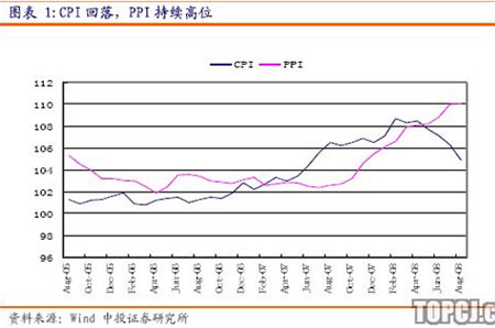 由于全球性的金融危机爆发,欧美经济今后两年无可避免地进入衰退,导致原油、有色、钢铁等大宗商品原材料价格开始下滑,但原材料价格下滑并不意味着实体经济、制造型企业收益上升,而是反映了下游需求下滑的现实。大宗商品的国际、国内原材料向来联动性较强,可以预计国内PPI指数也将被带动下滑,国际原油、煤炭等能源商品的价格下滑,也使得国内能源价格改革并不具有很强的紧迫性,中央在能源价格改革的自由度更大,虽然目前PPI仍然在10.1%以上的高位,中央完全可以坐等PPI下滑到一个理想位置,而不必加强调控措施,也不必急于放松能源价格的管制。因此我们认为未来宏观的经济政策将处于一个不紧不松的平和阶段。