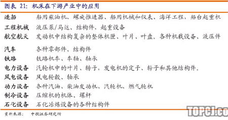 机床是先进制造技术的载体和装备工业的基本生产手段,机械制造的工作母机,是装备制造业的基础设备,主要应用领域是船舶、工程机械、军工、农机、电力设备、铁路机车、汽车等行业。在船舶、工程机械等行业的产能扩张压力的推动之下,机床工业正迎来快速发展阶段。