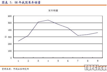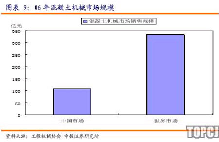 公司还是国内第二大混凝土机械生产商,混凝土机械收入占公司主营业务收入的38%,宏观调控对公司影响有限。主打产品为混凝土泵车,08年销售泵车720台,市场占有率约35%,有明显提升。