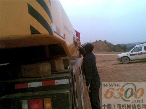 三一起重机服务工程师正在为客户设备做清洗