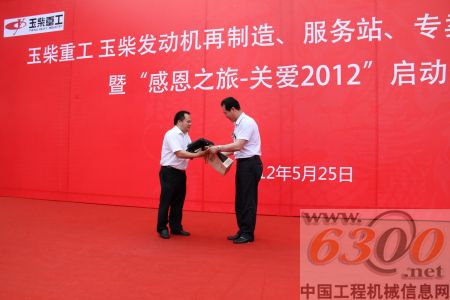 为了高效提升玉柴重工服务品牌形象,提高玉柴重工市场竞争力,2012年5月25日,玉柴重工玉柴发动机再制造合作项目、玉柴发动机服务站、广西玉柴机器专卖发展有限公司配件合作签约—暨“感恩之旅-关爱2012”启动仪式在中国常州隆重举行,玉柴机器股份有限公司、玉柴再制造工业(苏州)有限公司、玉柴重工配套供方代表、玉柴重工主要领导和员工代表、玉柴重工经销商代表以及全国媒体单位代表等约计600余人参加了仪式;同日,玉柴重工全国数十家经销商全国联动,共同拉开2012年全国服务用户、关爱用户大行动。