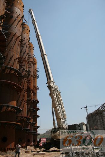 “说实话,这个项目对于AC500-2全路面完全是大材小用”,于氏飞龙总经理于兵兵介绍说:“这9个焦化炉高度均为37米,单体重量为50吨,根本不需要AC500-2。但这次的工程进度要求比较紧,工程的安全要求又极高,所以我们最终还是决定使用新引进的这台特雷克斯AC500-2。从5月8日至今,我们已经安装了5个焦化炉,基本3-4小时完成一个焦化炉的整体安装,安装过程非常顺利,没有出现任何问题,完全达到了我们预期的效果。” 在该项施工中,这台AC500-2的吊装高度最高达到了56米,吊装半径为21米,侧面吊装半径为14米,支腿伸出达到9.6米,没有进行超起作业。