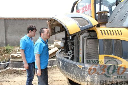 5月27日,玉柴重工常州服务工程师一行驱车拜访常州嘉哲镇用户戴文忠老板,当工程师们见到戴老板时,他的YC60-8还正处于忙忙碌碌的作业中。“你们不用这么兴师动众,我的小挖没出问题,你们不用来这么多人,谢谢你们的关心啦”,当戴老板见到八九个人的服务工程师队伍时,一边上前迎接,一边笑着喊着。据戴老板介绍,嘉哲当地现在发展养蟹业,这台正在作业的YC60-8是自己的第二台玉柴挖机,出活率高、动力强、油耗低,得到了很多工程老板的信任,自己才有机会包揽了很多挖蟹塘类的工程。“2011年11月份,戴老板还介绍了一个同乡也买了一台YC60机,现在工程量也挺多”,随行的常州办事处主任冯乐一边同戴老板聊天,一边和正保养机器的服务人员说着。