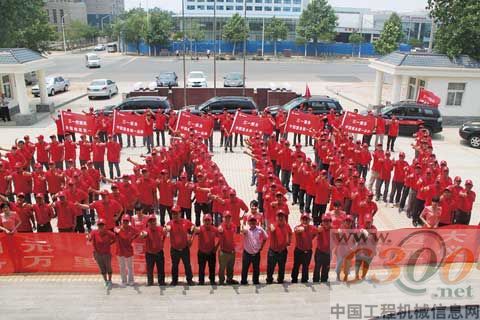 服务万里行出征仪式上,百余名服务人员排出三一LOGO造型