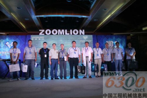 中联重科工程起重机公司甘青营销保障中心总经理王学东与参会用户合影