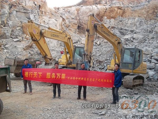 随后,服务人员驱车从贵阳到瓮安,经过几个小时的颠簸,到了唐老板的工地。唐老板有两台力士德挖机,一台SC160,一台CS230,经过和老板的交流,由于工况环境非常恶劣,我们提醒挖掘机驾驶员要注意空气滤清器的清洁,并详细示范了空气滤清器的清理方法,对两台挖掘机进行了全面细致的检查,唐老板说:“有了力士德服务团队的保障,我们没有了后顾之忧,挖掘机给他带来了财富”,唐老板对力士德真心为客户非常满意。
