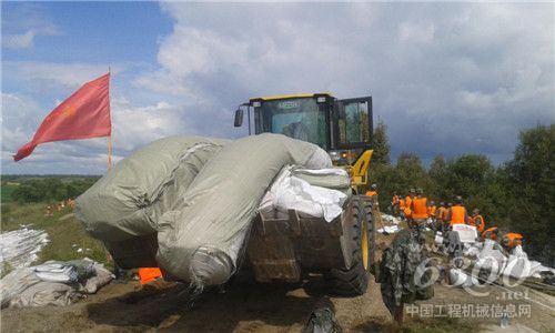 福田雷沃重工在得知这一消息后,立即联系到雷沃装载机位于伊春市的代理商——金日汽车服务销售公司。销售公司的于总在接到公司电话之后,第一时间将雷沃装载机投入到抗洪抢险的行动中。8月20日早上,伊春金日将雷沃ETX955装载机和雷沃ETX956装载机拉往伊春市嘉荫县,奋战在了抗洪抢险第一线。