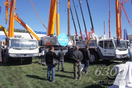 中联工起携“QY70V532.3汽车起重机”、“QAY300全地面汽车起重机(带超起)”、“RT25越野轮胎吊”三大产品亮相,显示了中联重科在工程起重机械领域的领先地位。
