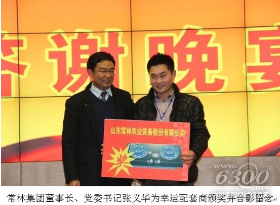 在答谢晚宴上,常林集团董事长、党委书记张义华,党委副书记、监事会主席马西连,常林集团副董事长兼农装公司董事长张东等领导同300多家配套商代表,共叙友情。精彩的精彩互动、现场抽奖等活动,将宴会推向高潮。