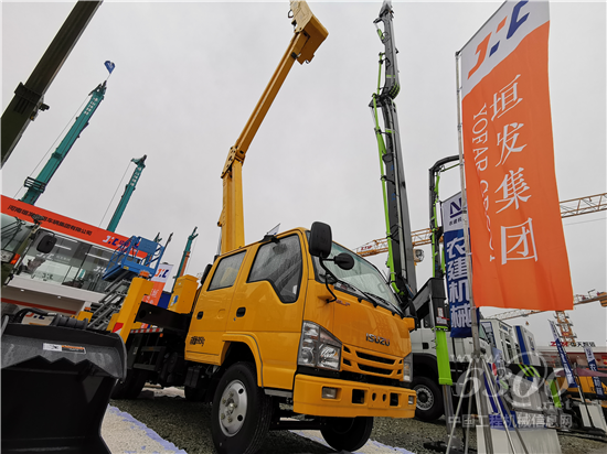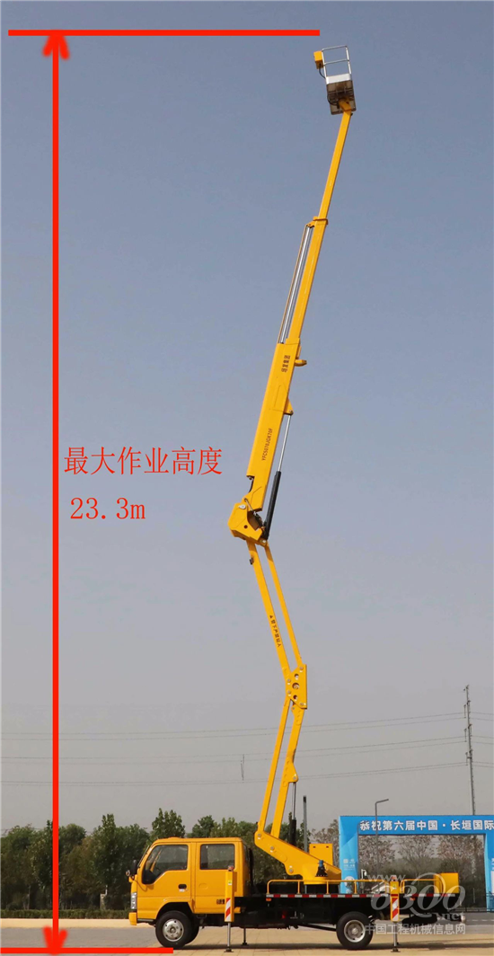 在展会现场,我们还注意到河南垣发另一款拳头产品——23米混合臂高空作业车。据朱总介绍,河南垣发23米混合臂高空作业车采用了双平行四边形+三节伸缩臂,伸缩臂作业灵活,跨障能力强,同时具备作业高度,最大作业高度23.3米,最大作业幅度11米,是一款新颖又实用的高空作业车。