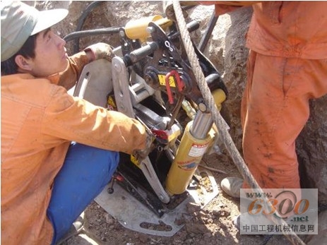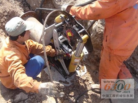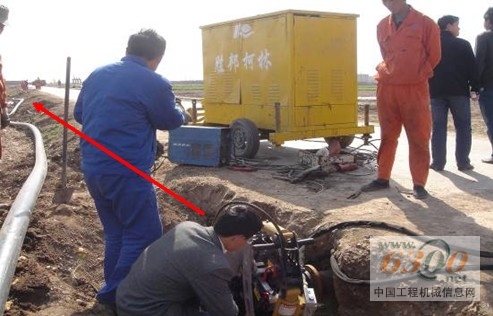 2) 发动机器,迅速动作操作手柄,直至钢丝绳拉紧,注意观察压力表读数,当回拉时压力表上显示指针有所变化的时候停下来检查,看新管道是否进入旧管内,检查各部分连接是否完好。
