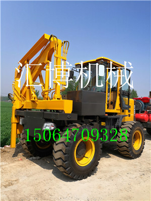 供应公路护栏钻打一体机 HB-30波形梁护栏打桩机最新报价 关键词:小型打桩机 地基打桩机厂家 护栏立柱打桩机价格 联系销售人员热线可拨打:15064709328(微信同号)联系人:韩经理 24小时随时接听您的来电 济宁汇博机械有限公司主要产品:光伏打桩机,履带长螺旋打桩机,护栏打桩机,打拔钻一体机,小型四轮打桩机,地基打桩机,铲车式打桩机,履带小吊车,履带运输车,履带式罐车 可根据不同地形加工定做 厂家直销 质量保证 。 护栏打拔钻一体机是公路护栏钢管打桩设备,该机集打拔钻功能于一体,一机多用,适用于各类复杂地层的公路波形护栏安装工作。 护栏打拔钻一体机技术参数: 采用30原铲车底盘,使操作中更加方便舒适。 功率 : 65kw 马力: 86 发动机:4100国三发动机 液压系统流量: 40-63ml/r 系统额定压力: ≥13-16Mpa 液压锤重量: 260kg 钻孔直径: 80-200mm 钻孔深度: 0-1200mm/min 钻孔速度: 0-1200mm/min 拔桩提升力度: 1.5-2T 液压锤冲击频率: 500-900Hz 液压锤工作流量: 60-100L/min 螺旋空压机空气压力: 0.8Mpa 螺杆空压机空气耗风量:≥8m3/min 刹车装置 : 碟刹+断气刹 整机重量 : 5T 外形尺寸 : 5.1*1.8*2.7米 五一到 订单爆满,现货快没有了。还不快来下订单 根据市场的需求,多年来我们的不断调研市场;研究、升级、改造,只为达到客户的需求,产品的质量的过硬,价格合适,安全系数更高。让客户买的放心;买的舒心;买的值。欢迎广大新老客户的下单订购! 详细了解请联系我们的销售经理: 济宁汇博机械设备有限公司 联系人:韩经理 手机 /微信:15064709328 //www.huibojixie.com