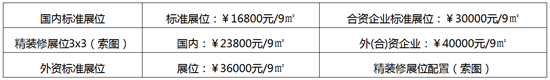 1、标准展位9m²(3m×3m);配置:展出场地、三面展板(高2.5m)、一块中英文楣板 、一 张洽谈桌、二把椅子、地毯、220V电源插座一个、二支射灯。  (注:双开口展位加收20%)