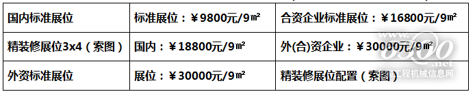 1、标准展位9m²(3m×3m);配置:展出场地、三面展板(高2.5m)、一块中英文楣板 、一 张洽谈桌、二把椅子、地毯、220V电源插座一个、二支射灯。 (注:双开口展位加收10%)