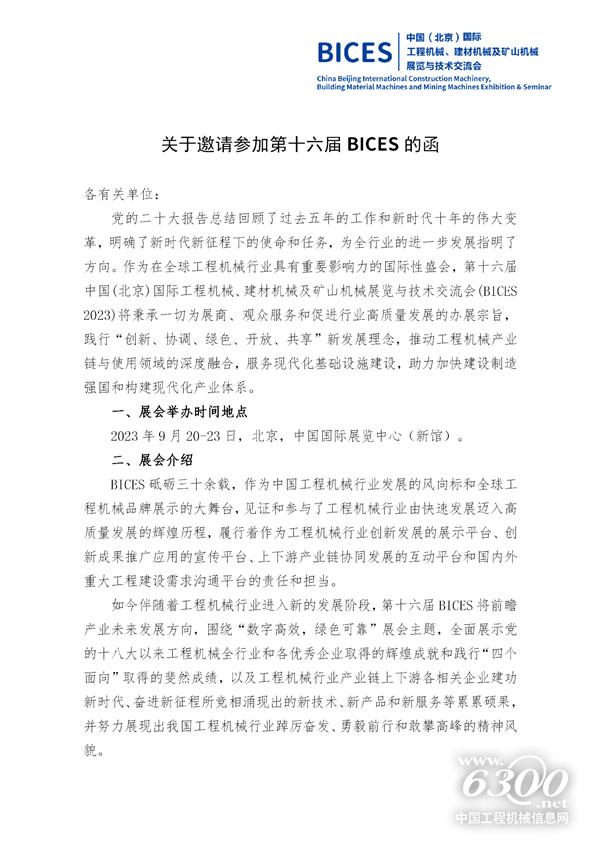 党的二十大报告总结回顾了过去五年的工作和新时代十年的伟大变革,明确了新时代新征程下的使命和任务,为全行业的进一步发展指明了方向。作为在全球工程机械行业具有重要影响力的国际性盛会,第十六届中国(北京)国际工程机械、建材机械及矿山机械展览与技术交流会(BICES 2023)将秉承一切为展商、观众服务和促进行业高质量发展的办展宗旨,践行“创新、协调、绿色、开放、共享”新发展理念,推动工程机械产业链与使用领域的深度融合,服务现代化基础设施建设,助力加快建设制造强国和构建现代化产业体系。