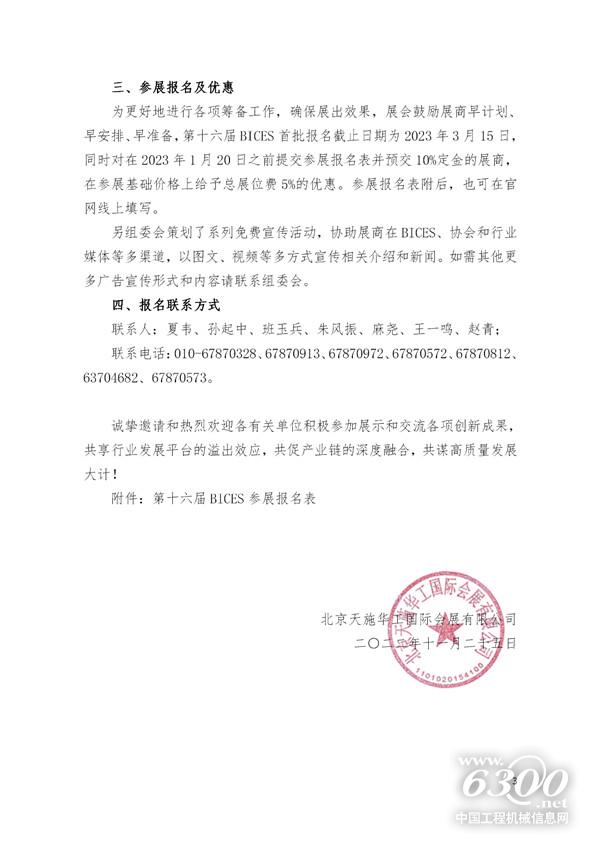 为更好地进行各项筹备工作,确保展出效果,展会鼓励展商早计划、早安排、早准备,第十六届BICES首批报名截止日期为2023年3月15日,同时对在2023年1月20日之前提交参展报名表并预交10%定金的展商,在参展基础价格上给予总展位费5%的优惠。参展报名表附后,也可在官网线上填写。