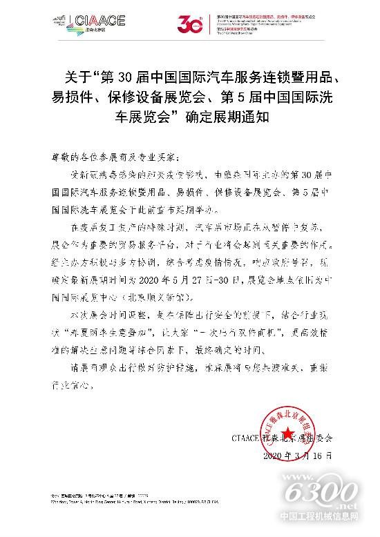 受新冠病毒感染的肺炎疫情影响,由雅森国际主办的第30届中国国际汽车服务连锁暨用品、易损件、保修设备展览会、第5届中国国际洗车展览会于此前宣布延期举办。