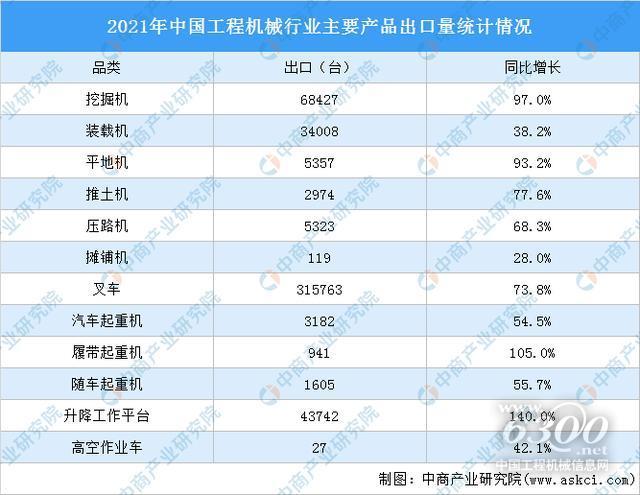 中国工程机械经过高速的成长,已迅速在国际上崛起,凭借着高性价比、高性能,赢得了世界的认可,海外出口销量势如破竹。2021年中国工程机械出口金额突破300亿美元,再创新高。升降工作平台、履带起重机海外销量翻倍增长。