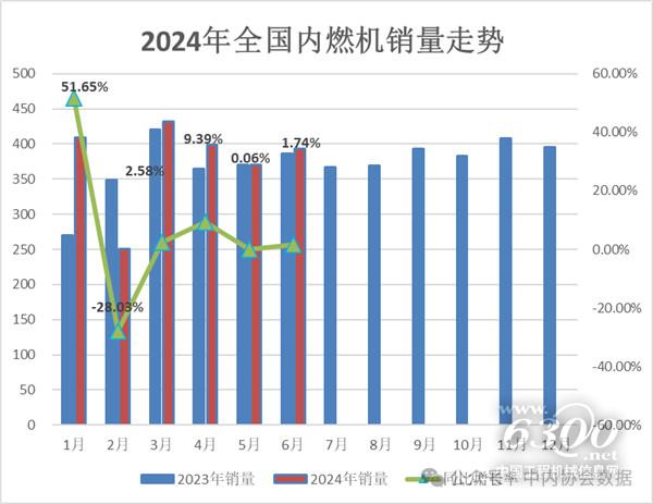2024年6月内燃机销量393.10万台,同比增长1.74%;上半年累计销量2253.29万台,同比增长4.36%。
