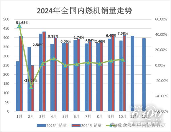 1-10月柴油机销量409.42万台(其中乘用车用13.27万台,商用车用161.29万台,工程机械用70.24万台,农机用125.02万台,船用4.72万台,发电用33.31万台,园林用0.71万台,通用0.86万台),汽油内燃机销量3426.49万台。