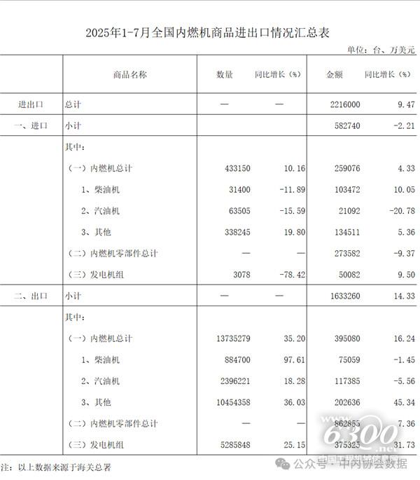 柴油机出口7.51亿美元,同比增长-1.45%;