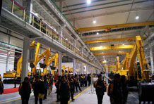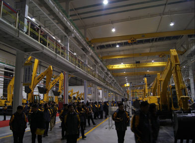 与会嘉宾参观临工年产两万台挖掘机生产基地