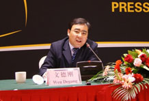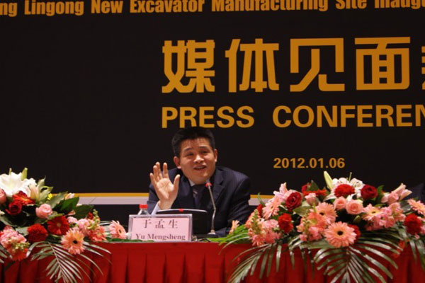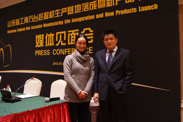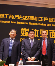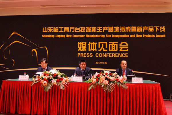 在山东临工两万台挖掘机生产基地落成典礼暨新产品下线新闻发布会现场,临工执行总裁于孟生先生、总经理文德刚先生、沃尔沃建筑设备(中国)有限公司总裁林宾华先生,和与会媒体分享了临工2011年斐然的生产经营业绩,并就临工的科技研发、海外战略、品牌建设以及未来发展构想做出了全面、细致、专业的解答。